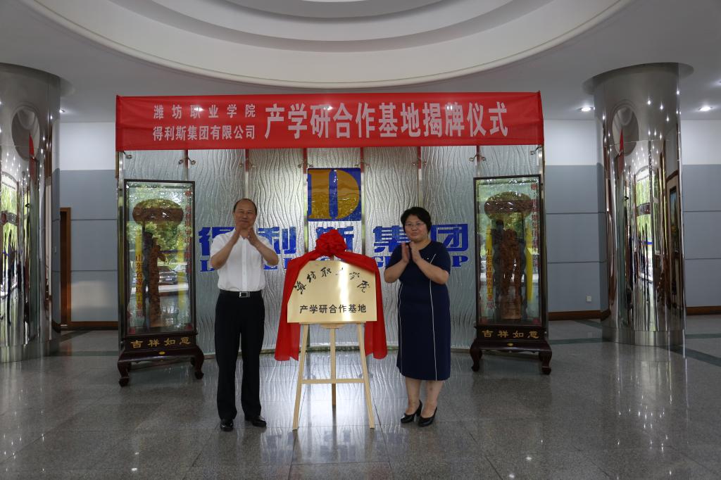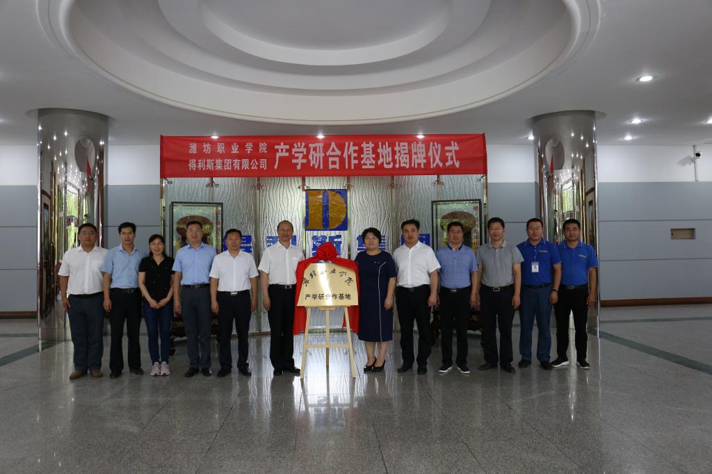 6月22日,潍坊职业学院产学研合作基地在得利斯集团有限公司总部揭牌成立。学院党委书记马跃启、副院长贺志强,学院副院长、诸城市委副书记(挂职)谭明,昌城镇党委书记刁立武,得利斯集团有限公司董事长郑思敏、总裁于瑞波、技术中心总监郑乾坤、总裁助理刘明等校企政领导出席,学院科技处(产学研合作中心)、食品药品学院、信息工程学院主要负责同志参加活动。