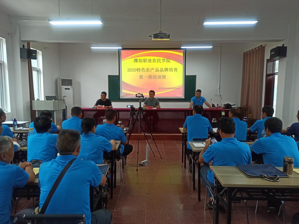 7月11日,潍坊职业农民学院2020年特色农产品品牌培育第一期培训班在潍坊职业学院培训基地开班,来自临朐县的80余名种植大户参加本次培训班。