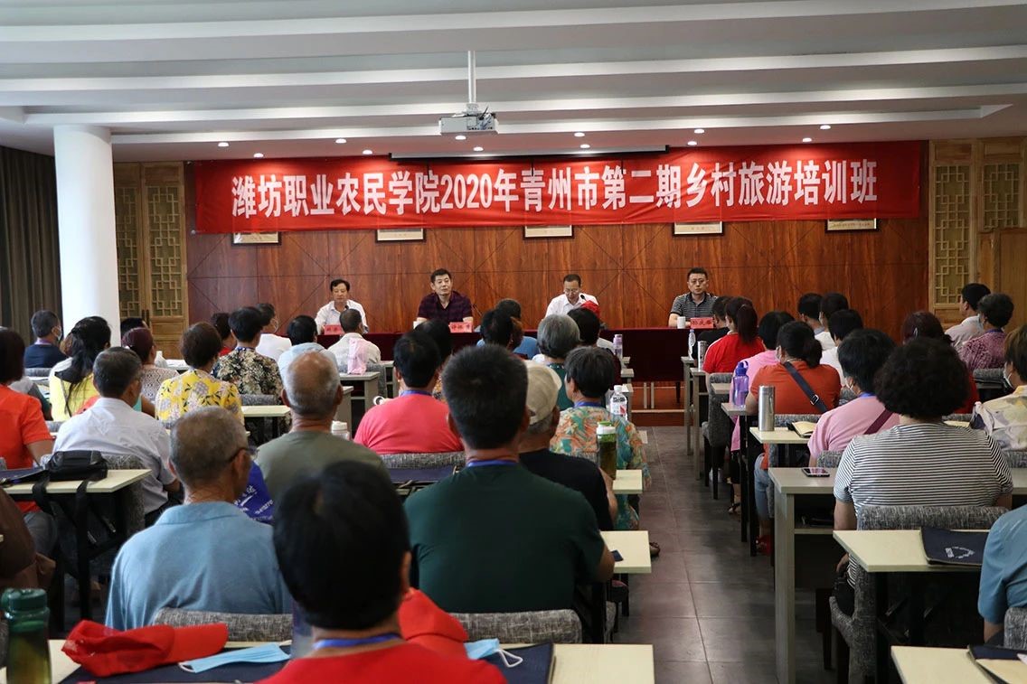7月14日,潍坊职业农民学院青州分院2020年乡村旅游第二期培训班在八喜文旅集团云住民宿举行开班仪式。潍坊职业农民学院和潍坊农广校领导出席开班仪式。何官镇南口埠村村民小组长、粮食瓜菜种植大户、新农村建设示范带头户村民等参加本期培训活动。