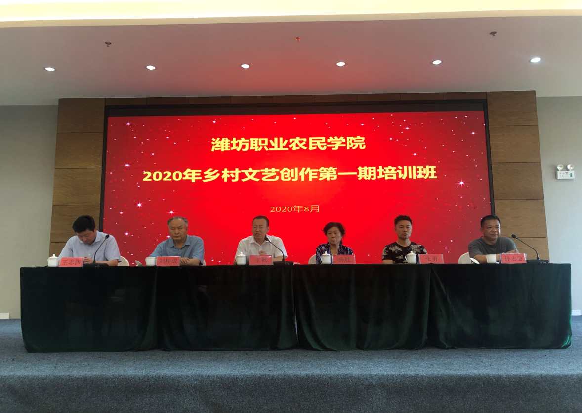 8月19日,潍坊职业农民学院2020年乡村文艺创作第一期培训班在潍坊职业农民学院诸城分院开班。开班仪式由诸城市文旅局孙志强局长主持,国家一级编剧刘桂成老师、国家一级导演杨琨老师、中国曲艺家协会理事张勇老师、诸城市文旅局党组王志伟书记及潍坊职业学院继续教育学院工作人员出席培训班开班仪式。