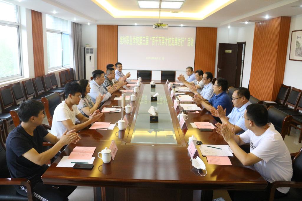 8月21日,学院在滨海校区举办“百千万英才校友潍坊行”活动,学院领导赵君堂出席会议,7名高层次英才校友代表、我院有关行业专家学者代表参加会议,会议由招生就业处同志主持。