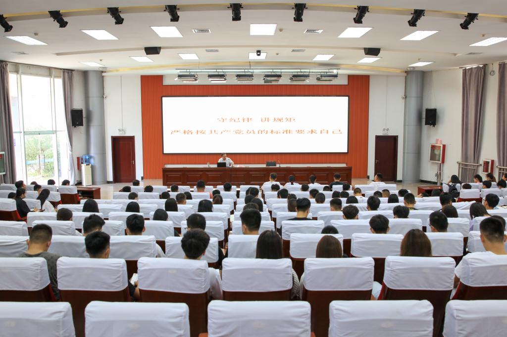 9月8日下午,学院纪委书记、市监委驻潍坊职业学院监察专员郭晓辉为我院2020年度党员发展对象作题为《守纪律 讲规矩 严格按共产党员的标准要求自己》的专题辅导,200余名党员发展对象参加学习。