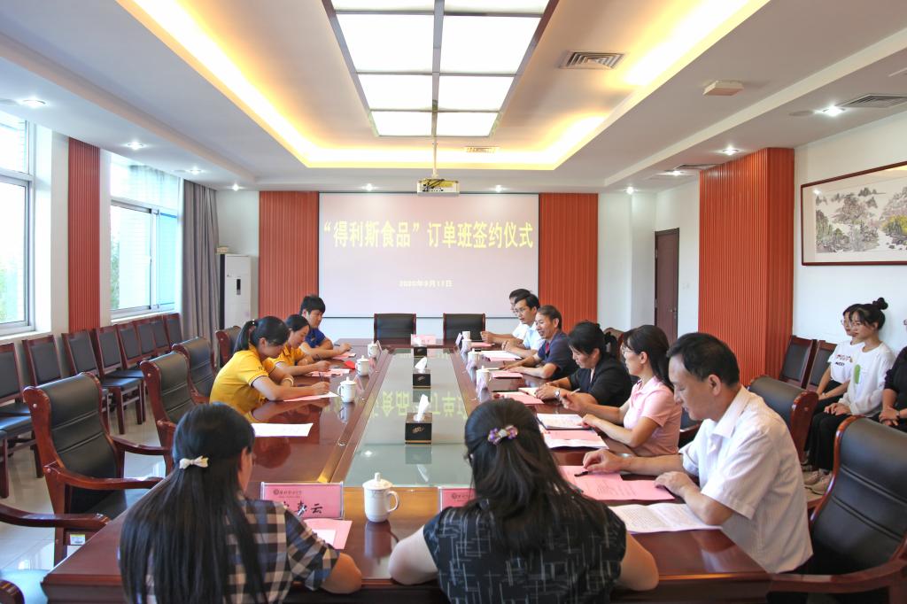 9月17日下午,学院与得利斯食品有限公司“得利斯食品订单班”签约仪式在滨海校区清泽楼222举行。学院副院长李瑞昌、教务处、科技处负责同志出席会议,得利斯食品有限公司人力资源部经理庄玉萍一行,食品药品学院班子成员和食品专业骨干教师代表参加会议。