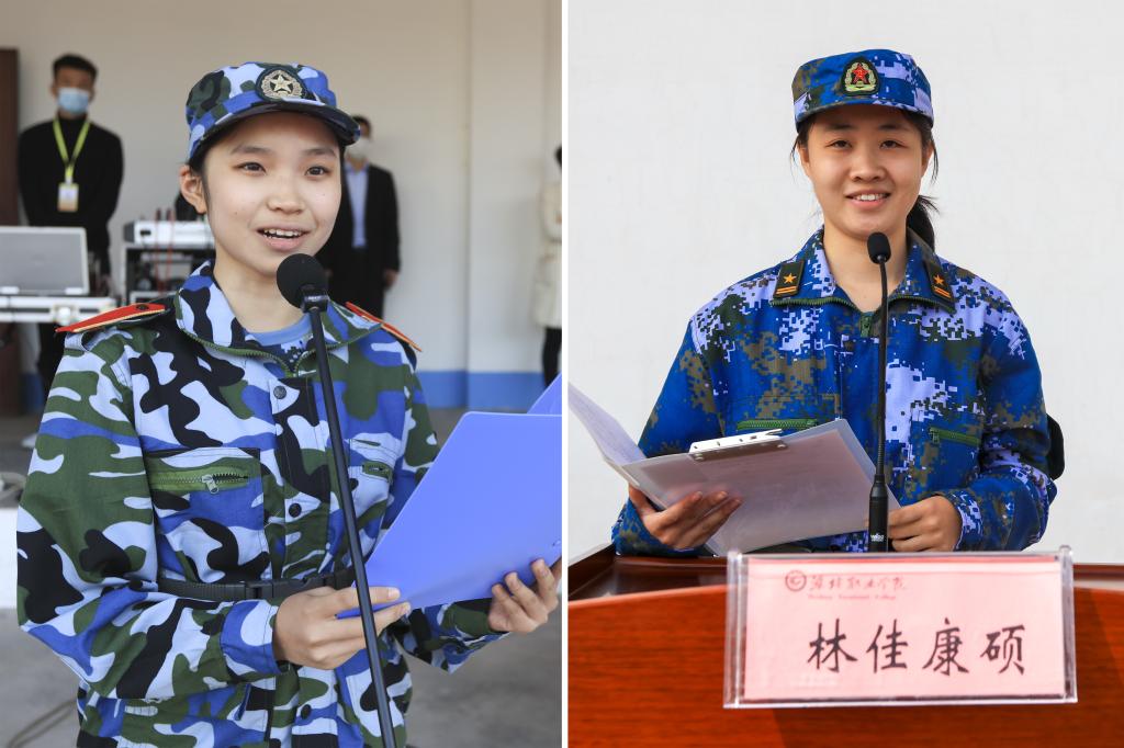 军训团团长宣布军训团任职令,2020级新生将以昂扬的斗志、饱满的热情投入到为期两周的军训教育中去。(李永波 仪婷婷供稿)