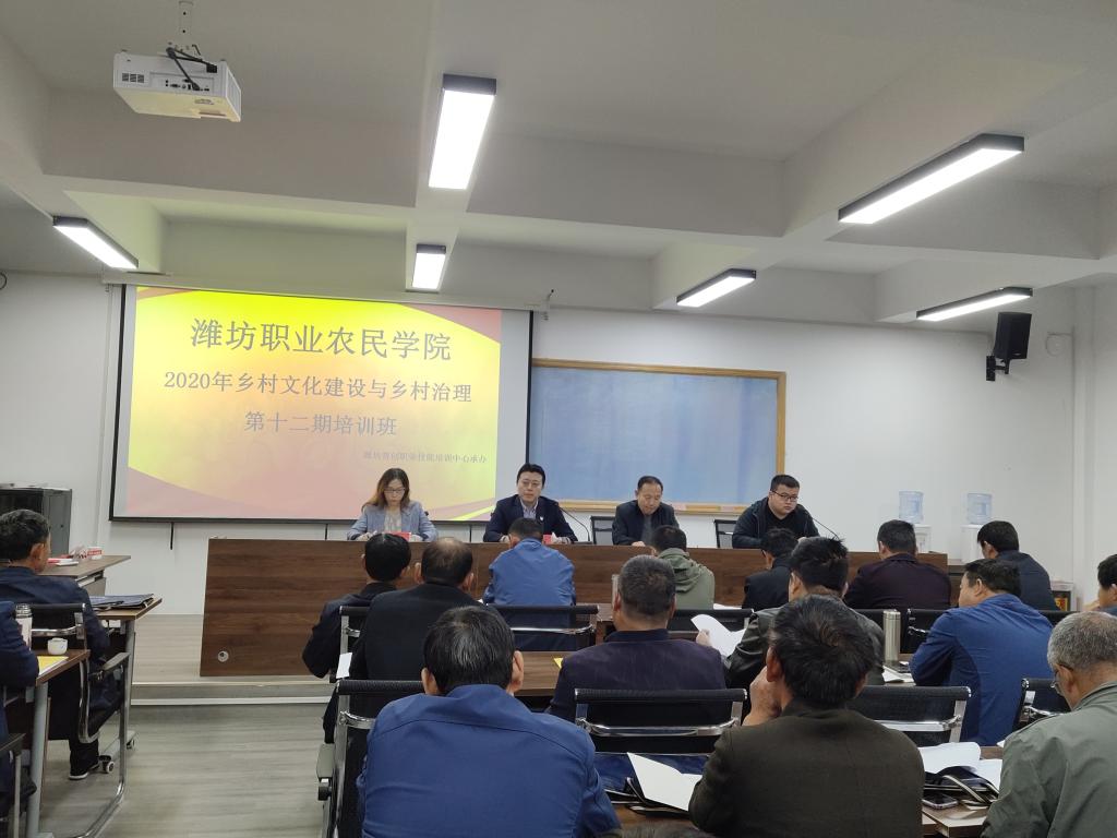 10月25日,潍坊职业农民学院2020年乡村文化建设与乡村治理第十二期培训班在潍坊职业学院开班。开班仪式由潍坊普创职业技能培训中心主任姜宁泰主持,诸城市农村经济发展中心农村财务管理科科长王金海、中共潍坊市委党校经济管理教研部主任孙冰及潍坊职业农民学院工作人员出席培训班开班仪式。