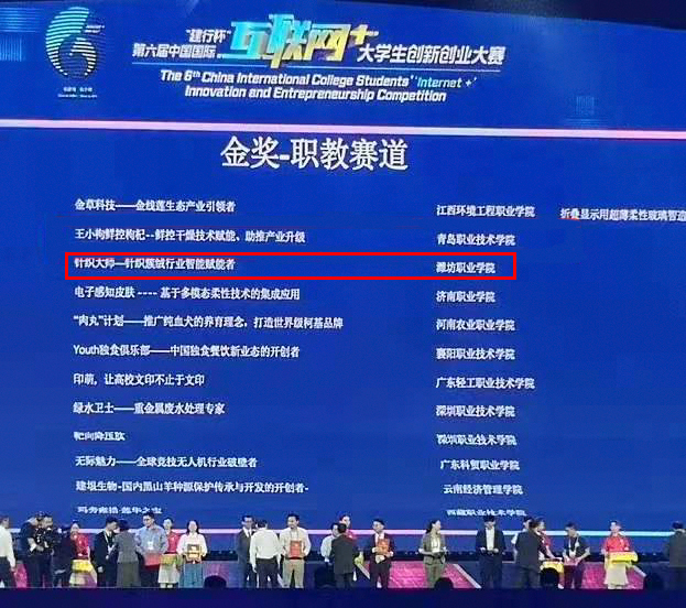 11月17日至20日,第六届中国国际“互联网+”大学生创新创业大赛全国总决赛在华南理工大学举行,中共中央政治局委员、国务院副总理孙春兰、教育部部长陈宝生、广东省委书记李希等领导出席大赛。我院机电工程学院2018级学生孙凯领衔的项目团队,依托团队扎实的科研实力,凭借《针织大师》项目荣获本届中国国际“互联网+”创新创业大赛金奖,这是我院在该赛事中的首个金奖。齐云国老师等指导的《泵站之眼》项目获得大赛铜奖。辛海明等指导老师获全国优秀创新创业导师奖。