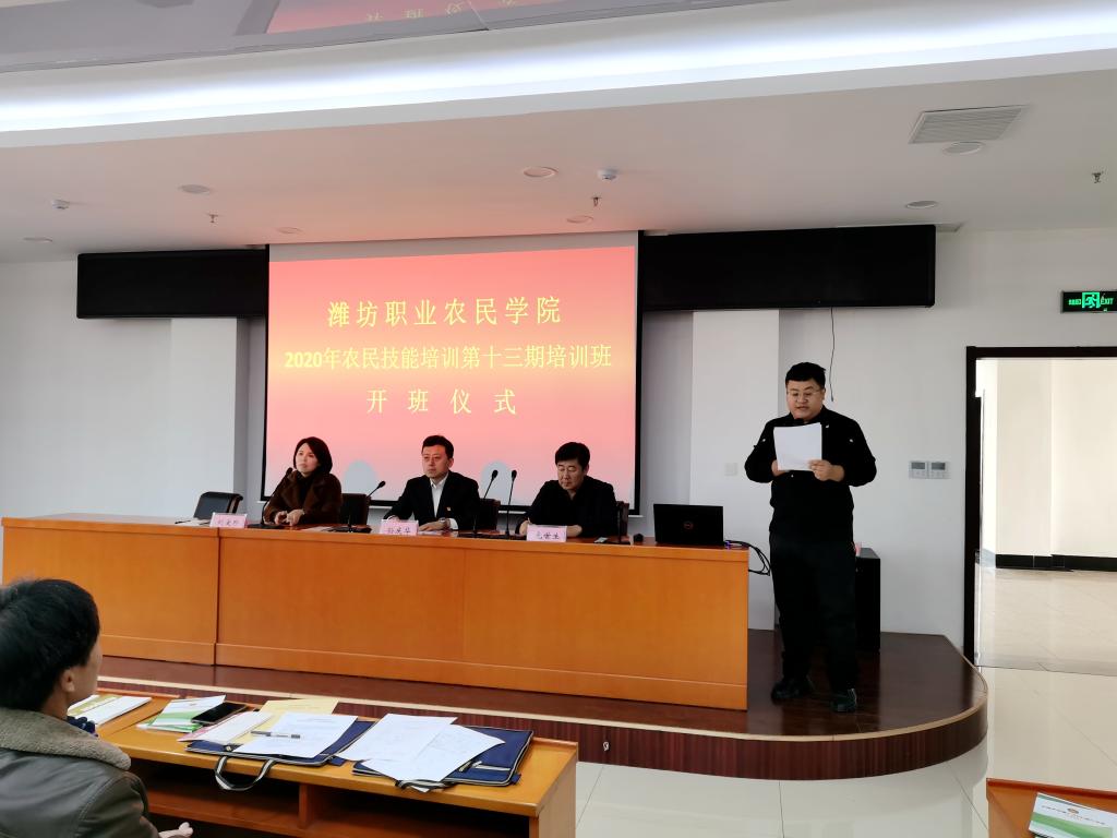 11月29日,潍坊职业农民学院2020年农民技能培训第十三期培训班在潍坊职业农民学院安丘党校培训基地开班,潍坊市农业推广中心主任庞世生、潍坊职业农民学院工作人员出席培训班开班仪式。