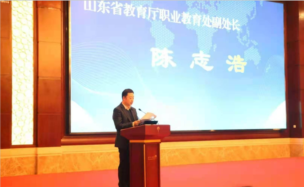 马跃启致辞。他介绍了学院办学成绩和我院承办2020年职教活动周启动仪式暨全国职业院校职业技能大赛改革试点赛情况。他表示,学院作为山东省1+X证书制度试点联盟理事长单位,将认真细致做好服务工作,充分发挥桥梁纽带作用,努力为各试点院校交流、学习、研讨创造机会,提供良好条件。