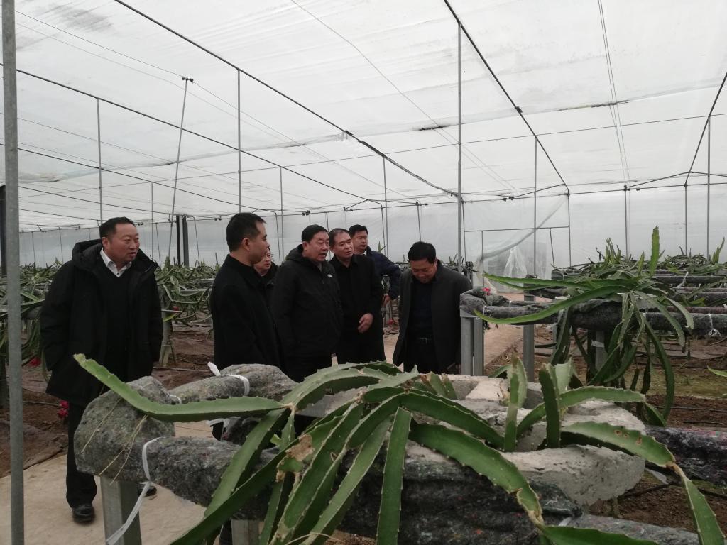 座谈结束后,宋桂言一行参观了帮扶村火龙果生产基地和秋月梨产业园。(董宝成供稿)