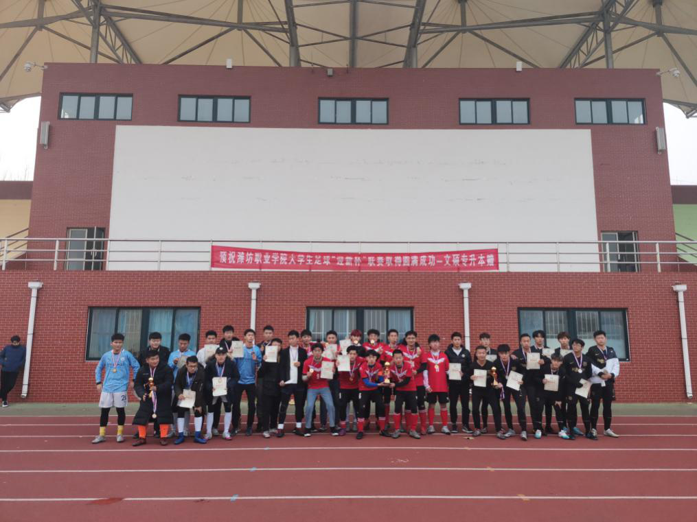 12月10日下午,由通识教育中心、团委学生工作处组织的2020年潍坊职业学院大学生“迎新杯”足球联赛在滨海校区足球场圆满结束。本次比赛共有六支队伍90余名运动员报名参赛,经过15场小组比赛、历时一个月的激烈争夺,最终现代服务业学院和文化创意学院联队获得冠军,信息工程学院、机电工程学院分获亚军、季军。