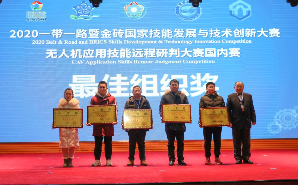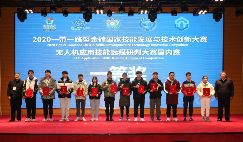 12月19日上午,2020一带一路暨金砖国家技能发展与技术创新大赛无人机应用技能远程研判国内赛决赛在潍坊职业学院圆满落幕。中国发明协会党委副书记、副理事长唐大力,潍坊职业学院院长王家爱,欧盟中国城市发展委员会主席、远洋航空科技(天津)有限公司董事长张毅,中国职业技术教育学会学术委员会委员、常务理事罗志,北京师范大学博士生导师、国家职业教育研究院副院长俞启定,俄罗斯自然科学院外籍院士、格鲁吉亚国家科学院外籍院士、山东理工大学原校长张铁柱,欧洲科学院荣誉院士、深圳无人机行业协会会长杨金才,中国发明协会发明创业促进中心主任周小麒,现代职业教育研究院副院长郭海清等学者、专家以及全国各地的选手、领队和指导教师100余人出席了闭幕式。闭幕式由金砖国家工商理事会(中方)技能组执行总监崔雪艳主持。