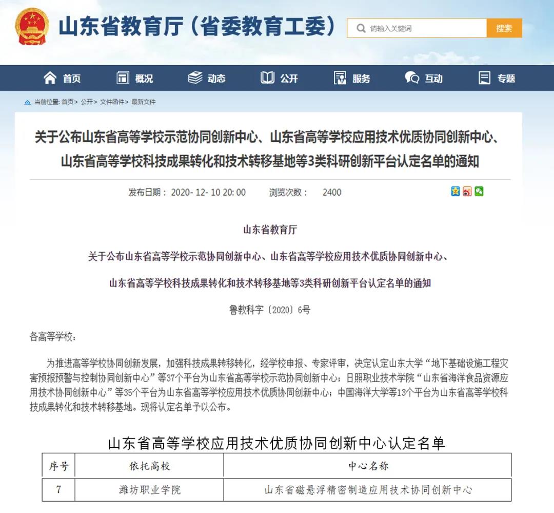 学校现有3个国家级协同创新中心,26个省市级工程技术中心、重点实验室,产学研合作企业456家,技术服务到款额1825.01万元,专利转化额为24.62万元。12月7日,学校与天瑞重工有限公司共建的山东省磁悬浮精密制造应用技术协同创新中心被山东省教育厅认定为山东省高等学校应用技术优质协同创新中心。中心的认定,必将推动学校科技研发平台建设,提升高新技术研发能力和成果转化能力,更好地服务地方经济建设和科技发展。