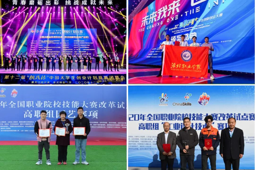 11月8日,2020年职业教育活动周全国启动仪式暨全国职业院校技能大赛改革试点赛开幕式在我校举行。教育部部长陈宝生出席并讲话,山东省委书记刘家义,省委常委、宣传部部长、省教育工委书记于杰,省委常委、秘书长刘强等部省领导和各省、自治区、直辖市教育部门领导、潍坊市主要领导等出席。陈宝生强调,贯彻落实十九届五中全会精神,职业教育要在“五入”上下功夫,为“人人皆可成才、人人尽展其才”进一步创造条件,努力建设技能型社会、建设技能中国。职业院校技能大赛要探索完善办赛机制、补齐短板,发挥“树旗、导航、定标、催化”作用。期间,领导们考察了职业教育活动周现场和我校实训中心。活动现场有71家学校和企业参展,通过动静结合,实物展示和现场技能操作结合的方式,展现职业教育在决胜全面小康、支撑产业转型升级、决战脱贫攻坚、服务乡村振兴等方面的重要贡献。我校展示现场分为智能制造、现代农林、技艺传承、文化创意等8个展区,全面展示办学成绩,领导们对我校的办学成果给予高度评价和充分肯定。