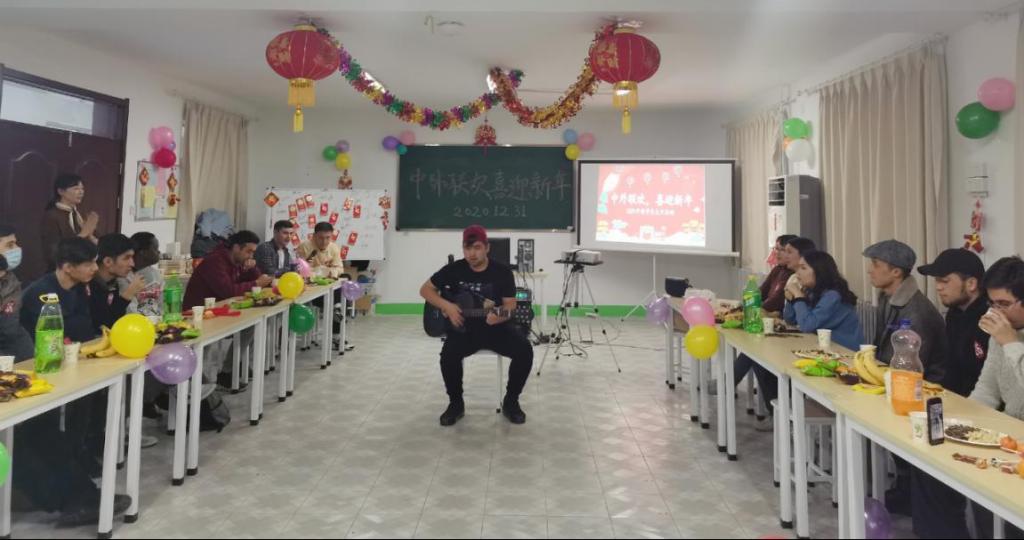 欢声笑语迎新年,热热闹闹大联欢。12月31日下午,国际教育学院在奎文校区举办留学生“中外联欢,喜迎新年”庆祝活动。学校副校长李瑞昌与来自哈萨克斯坦、乌兹别克斯坦、塔吉克斯坦、俄罗斯、塞拉利昂等国家的留学生以及国际教育学院全体教师欢聚一堂,共同迎接2021年的到来。