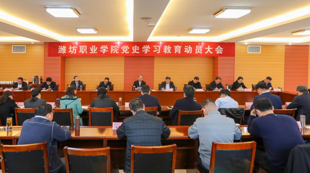 马跃启强调,开展党史学习教育是当前和今后一段时期的重要政治任务,要把握好学习教育的目标任务、基本要求和核心要义,确保学习教育组织到位、措施到位、落实到位。一是对标对表开展党史学习教育。做到在学史爱党中进一步坚定理想信念,在以史为鉴、现实对照中进一步坚定“四个自信”,在推进高质量发展中进一步坚定使命担当。二是把握主线开展党史学习教育。以学思践悟习近平新时代中国特色社会主义思想为主线,把党史学习教育同贯彻落实习近平总书记关于教育重要论述及对山东、对潍坊的重要批示、指示精神结合起来,同解决我校“双高/职教高地”建设中的突出问题和加强党的建设面临的紧迫问题结合起来,同统筹推进疫情防控和改革发展结合起来。三是注重凸显特色开展党史学习教育。要注重挖掘特色资源,充分用好革命遗址、纪念场馆等本地红色资源,在党的生日、国庆节等重要时间节点,针对性地组织学习活动。四要以上率下开展党史学习教育。各级领导班子及成员要发挥示范引领作用,先学一步、学深一层。五要力求实效开展党史学习教育。党史学习教育要与学校重难点工作紧密结合,扎实开展“我为群众办实事”实践活动并贯穿学习教育全过程,使全校党员干部在党史学习教育中焕发出来的热情转化为攻坚克难、干事创业的实际成果。