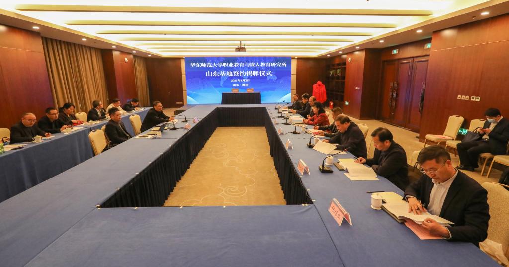 近日,华东师范大学职业教育与成人教育研究所山东基地落户潍坊职业学院,4月2日,基地签约暨揭牌仪式在潍坊富华大酒店举行。华东师范大学职业教育与成人教育研究所所长、教授、博士生导师徐国庆,山东省教育厅职业教育处调研员孟令君,潍坊市副市长李平,潍坊市府办公室副主任贾宝文,潍坊市教育局局长杜全平、二级调研员李广敬,学校党委书记马跃启,副校长贺志强、李瑞昌,党委委员、办公室(统战部)主任(部长)任培华,以及市教育局和学校相关同志出席揭牌仪式。