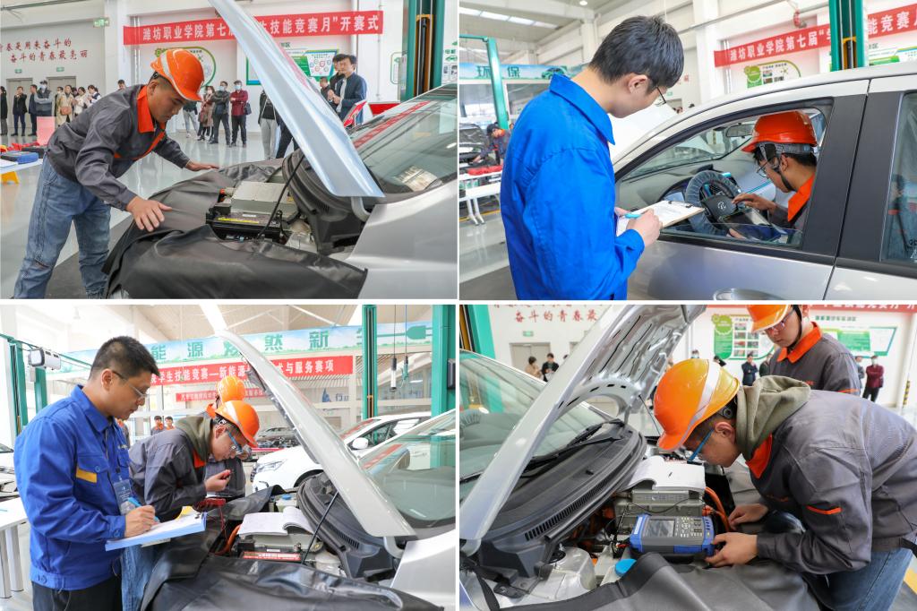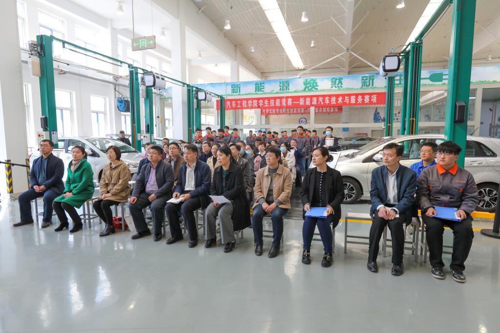 仪式结束后,学校领导和师生们一同观摩了汽车工程学院新能源汽车技术与服务赛项比赛情况。