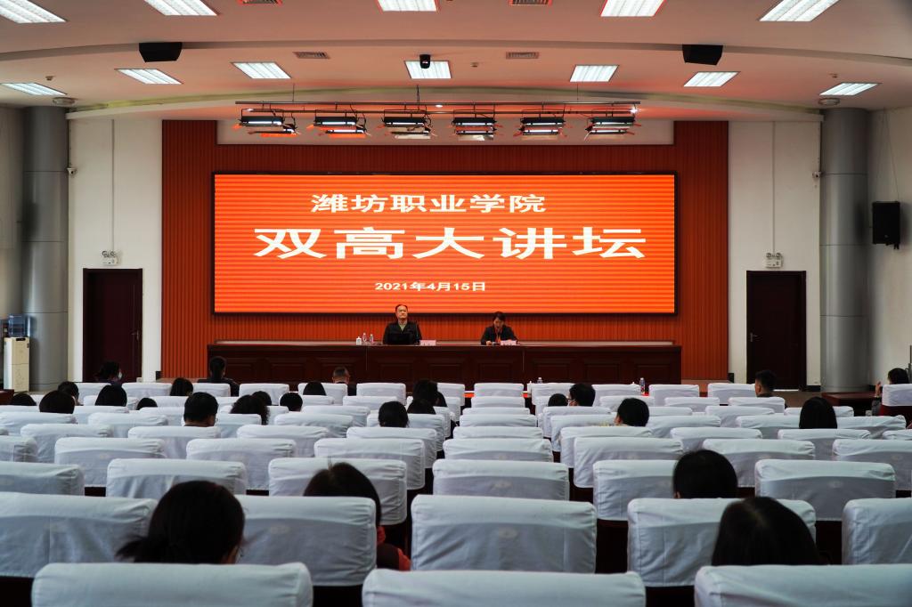 4月15日,学校在滨海校区清泽楼报告厅举办“双高大讲坛”线下第五讲。高等教育出版社在线职业教育发展中心主任王冰作了题为《“高水平专业群”信息化教学的思考与实践》的报告。各部门骨干教师、教研室主任,专业教学资源库、在线课程、课程思政示范课、活页式、工作手册式教材建设团队成员及双高办全体成员参加了报告会。