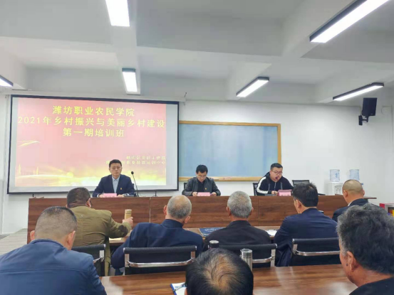 4月27日,潍坊职业农民学院2021年乡村振兴与美丽乡村建设第一期培训班在潍坊职业学院奎文校区开班。开班仪式由潍坊普创职业技能培训中心姜宁泰主持,峡山区党群工作部主任王少长出席培训班开班仪式,来自峡山生态经济发展区王家庄街道的农村党员共计80余人参加本次培训班。