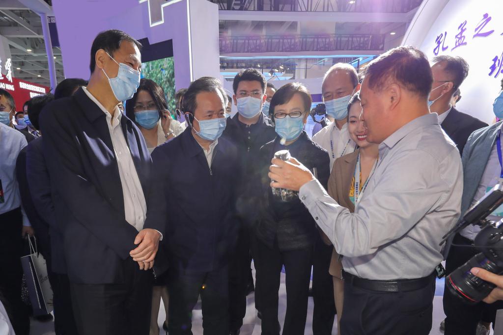孙尧等领导莅临我校展位参观,并与丁世民教授进行交流。我校的展示项目吸引了各大媒体记者前来采访和大批参会者驻足观看了解,受到一致好评。