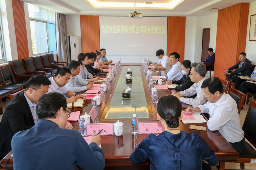 5月25日上午,滨州科技职业学院综合办公室主任杨婷一行来我校考察交流。副校长刘德强会见客人,党委委员、宣传部部长刘泓蔚,党委委员、办公室(统战部)主任(部长)任培华,国际交流合作处、招生就业处、信息中心相关负责同志陪同参加座谈交流活动。