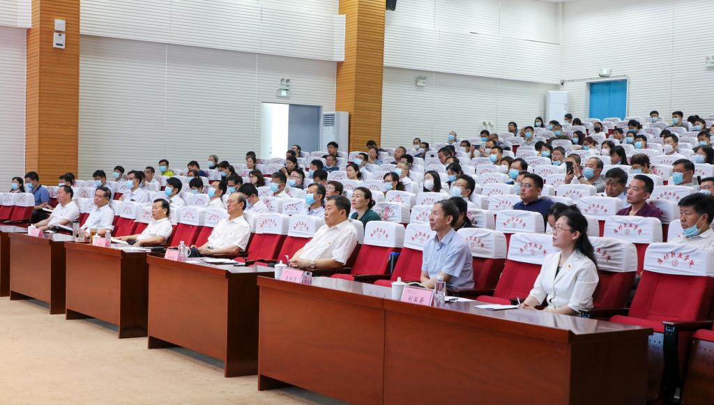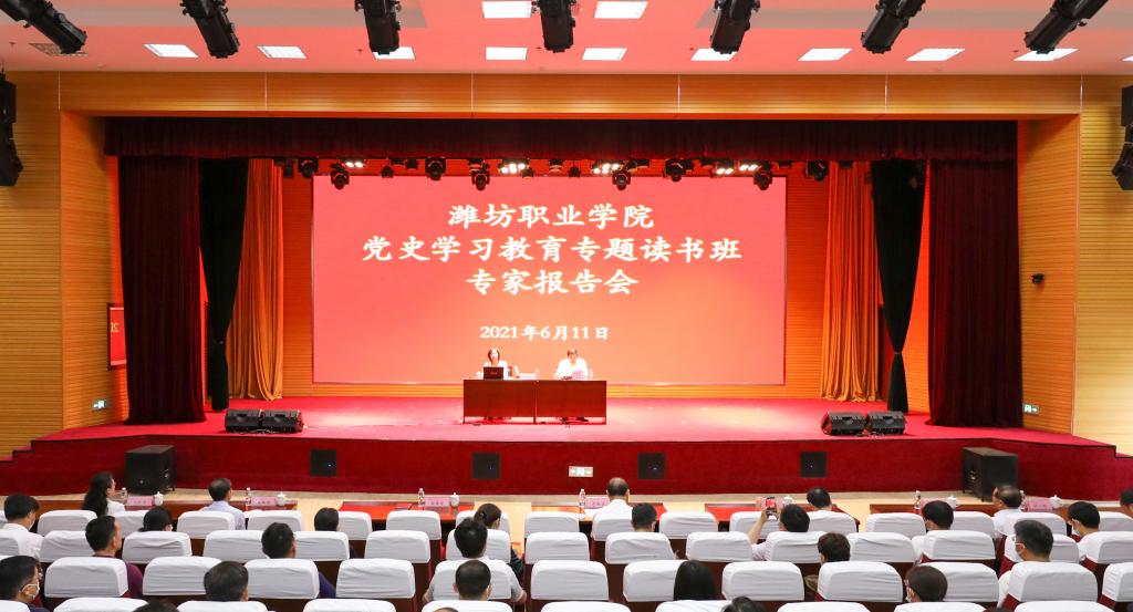 为深入开展党史学习教育,引导广大党员干部学史明理、学史增信、学史崇德、学史力行,根据学校党史学习教育专题读书班的统一安排,6月11日上午,学校在滨海校区图书馆报告厅举办党史学习教育专题读书班专家报告会。潍坊市委党校党史党建教研部教授蒿艾莉作题为《中国共产党的奋斗历程、巨大成就与宝贵经验》的专题报告。学校党政领导班子成员,各部门中层正、副职干部,教师和学生党支部书记,教师党员代表200余人参加。报告会由学校党委副书记宋桂言主持。