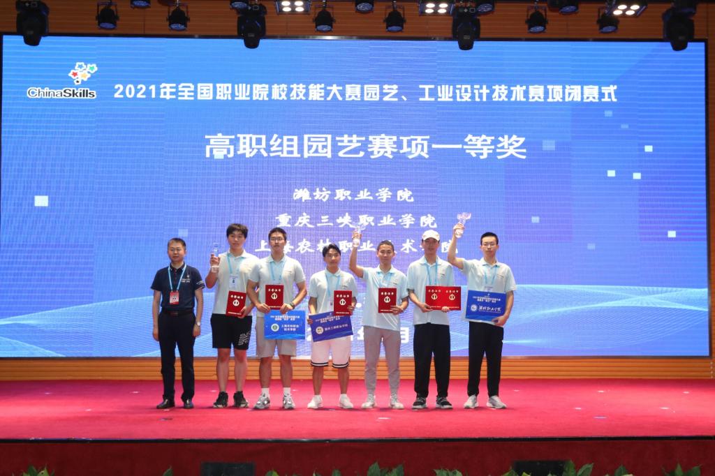 6月19至22日,2021年全国职业院校技能大赛高职组“园艺”赛项在潍坊举行。来自全国各省、市、自治区的28支代表队参赛。经过四天共计22小时激烈角逐,共产生一等奖3项,二等奖6项,三等奖8项。我校刘春亭、翟斌同学组成的代表队以第一名的成绩获大赛一等奖,任有华、王勤华老师获优秀指导教师奖。