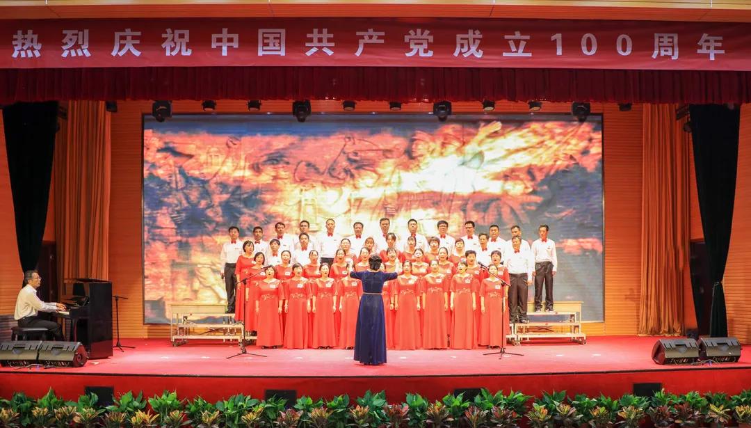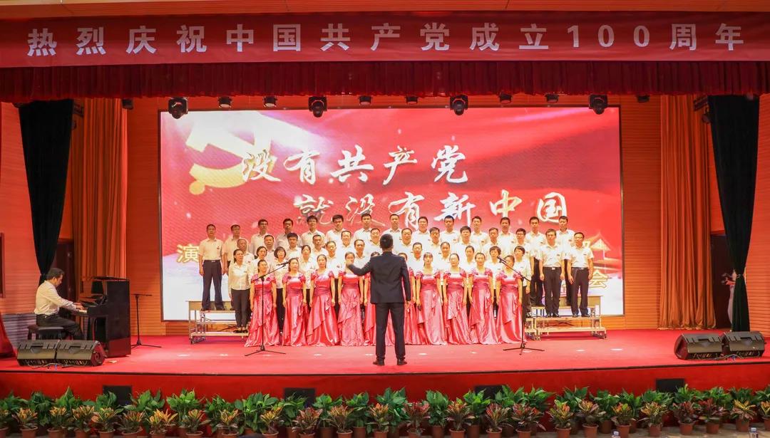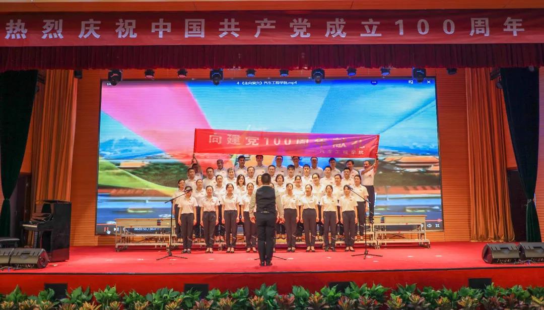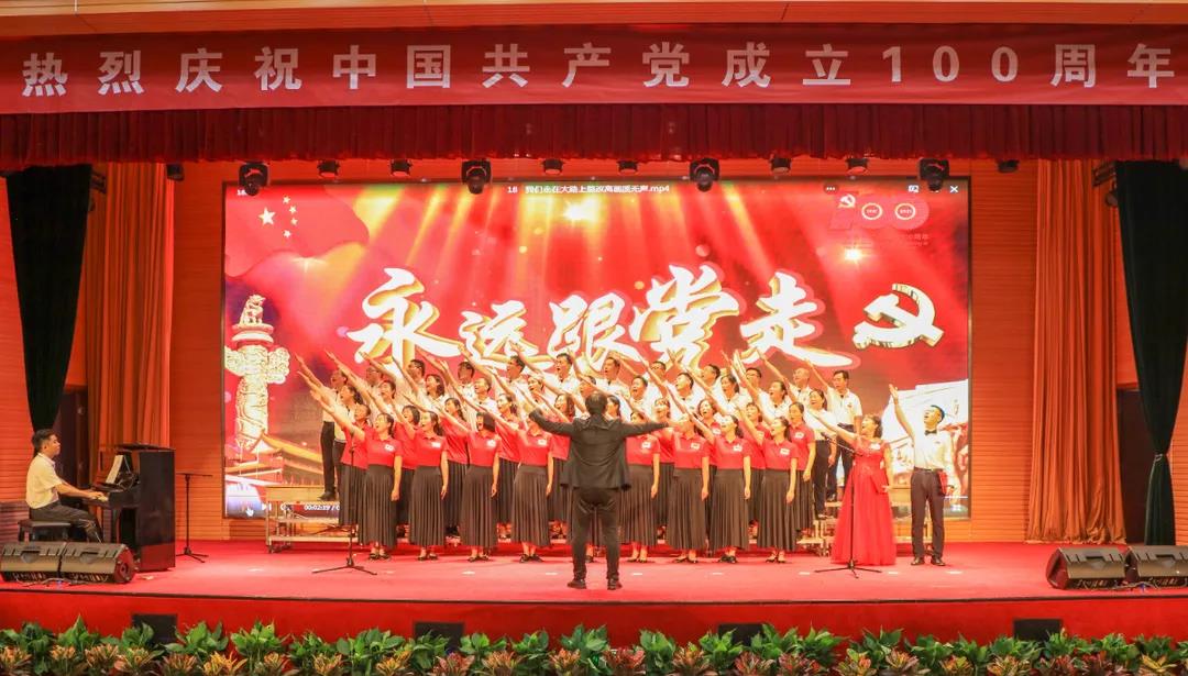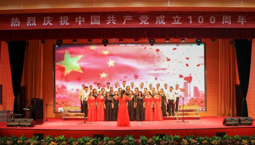 “五星红旗迎风飘扬,胜利歌声多么响亮;歌唱我们亲爱的祖国……”演出在《歌唱祖国》中拉开序幕。《我和我的祖国》《中国,中国,鲜红的太阳永不落》《走向复兴》《没有共产党就没有新中国》《少年》《爱我中华》《歌唱祖国》《学习雷锋好榜样》《红梅赞》《黄河大合唱》《迎风飘扬的旗》《团结就是力量》《社会主义好》《我们走在大路上》等, 一首首经典红色旋律的大合唱讴歌了中国共产党成立100周年来的辉煌成就,一首首催人奋进的歌曲激发了全校师生热爱祖国、热爱社会主义的高尚情怀,一首首振奋人心的歌曲,带给我们无穷的力量,激励我们不断前行。演出结合舞蹈、朗诵等艺术形式,为师生奉献了一场艺术水平高、参与性强的视听盛宴。