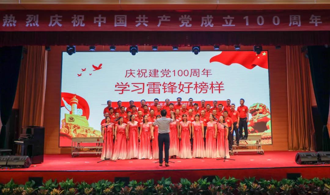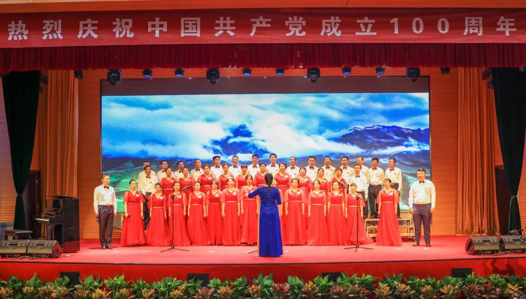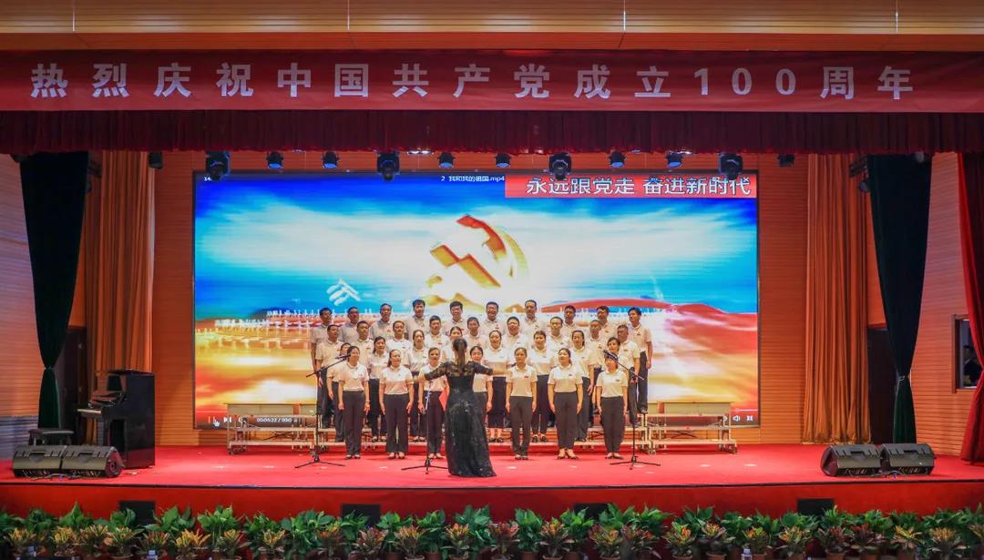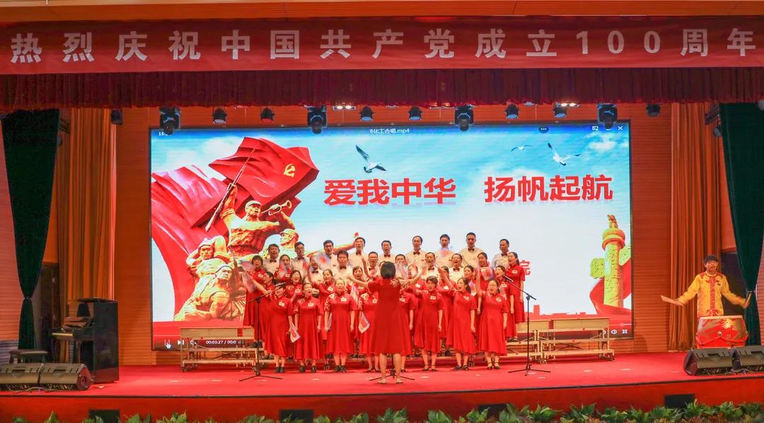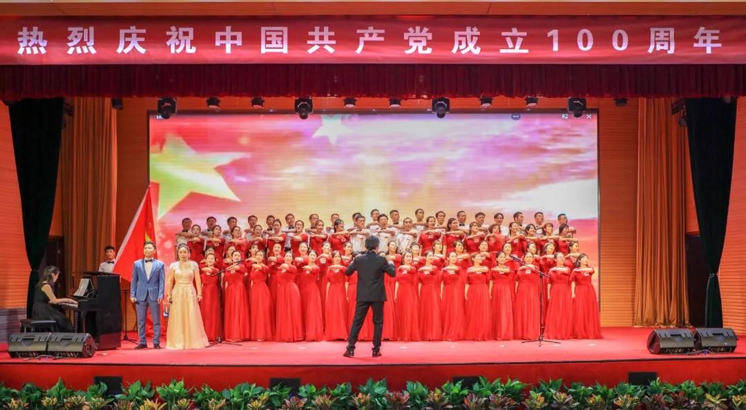 “五星红旗迎风飘扬,胜利歌声多么响亮;歌唱我们亲爱的祖国……”演出在《歌唱祖国》中拉开序幕。《我和我的祖国》《中国,中国,鲜红的太阳永不落》《走向复兴》《没有共产党就没有新中国》《少年》《爱我中华》《歌唱祖国》《学习雷锋好榜样》《红梅赞》《黄河大合唱》《迎风飘扬的旗》《团结就是力量》《社会主义好》《我们走在大路上》等, 一首首经典红色旋律的大合唱讴歌了中国共产党成立100周年来的辉煌成就,一首首催人奋进的歌曲激发了全校师生热爱祖国、热爱社会主义的高尚情怀,一首首振奋人心的歌曲,带给我们无穷的力量,激励我们不断前行。演出结合舞蹈、朗诵等艺术形式,为师生奉献了一场艺术水平高、参与性强的视听盛宴。
