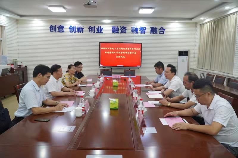 贺志强介绍了学校近年来取得的标志性成果,希望以博士人才联合科研创新平台签约为契机,充分发挥双方博士等高层次人才作用,共同申报高层次项目,推进校院合作、融合发展、互惠共赢,助力学校“双高”校、全国乡村振兴人才培养优质校建设。他要求教师工作部、科技处一定要深入推进项目合作,倾注心血,扎实落实,力争产出高水平合作成果。