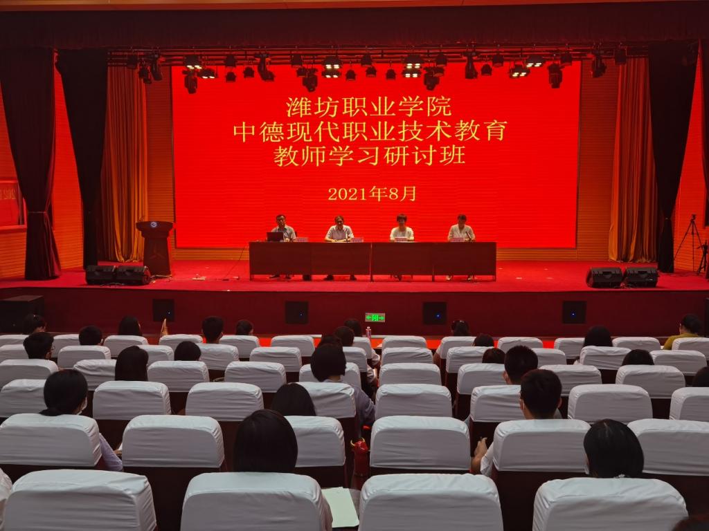为进一步加强青年教师队伍建设,8月21日,学校在滨海校区图书馆报告厅举办2021年中德现代职业技术教师学习研讨班,学校副校长李瑞昌、德国都文教育集团国际项目主任、北京无限智联科技有限公司副总经理曹大治女士、校内培训专家以及学校近三年入职的90名专任教师共同参加了开班式,开班仪式由教师工作部负责同志主持。
