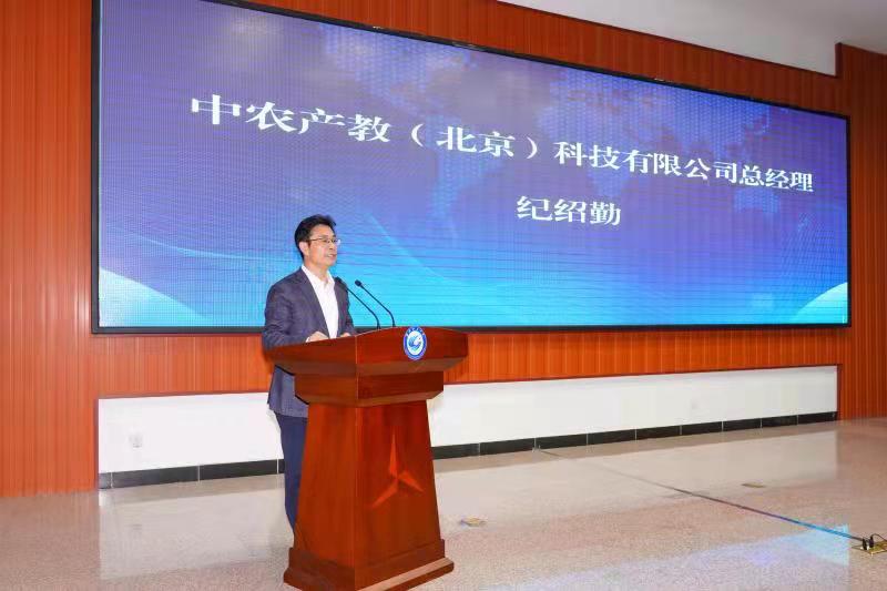 纪绍勤讲话,中农产教(北京)科技有限公司作为研究院的发起方之一,旨在通过公益性定位、市场化运作的方式,推动涉农领域的产教深度融合、校企密切合作,打通教育链、产业链、人才链和价值链。企业将秉承“优势互补、资源共享、互惠共赢、协同发展”的原则,积极支持研究院的建设与发展,发挥企业优势,集聚激活各方优势资源,打造产学研用平台,创建科学高效灵活的运营机制,加快科技研发、成果转化和推广应用,推进脱毒大姜种苗快繁,为大姜产业绿色高效发展贡献力量。