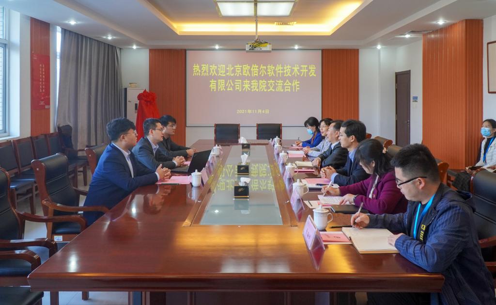 11月4日上午,我院与北京欧倍尔软件技术开发有限公司共建虚拟仿真实训基地签约暨软件捐赠仪式在清泽楼222会议室举行。学院党委委员、副院长贺志强,北京欧倍尔软件技术开发有限公司副总经理张成林,科技处、食品药品学院主要负责同志及部分骨干教师出席仪式。