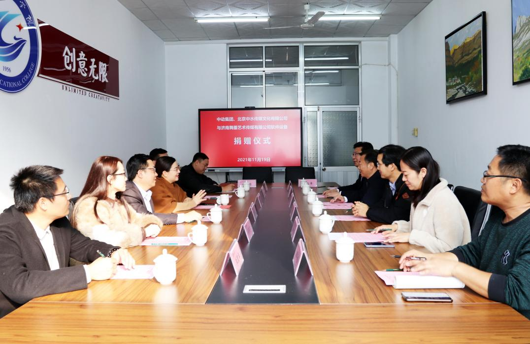 11月19日上午,中动集团(山东中动教育科技有限公司)、北京中水传媒文化有限公司和济南舞墨艺术传媒有限公司软件设备捐赠仪式在文化创意学院举行。学院党委委员、副院长贺志强,中动集团执行长卢红星、济南舞墨艺术文化传播有限公司总经理朱戎墨,科技处、文化创意学院主要负责同志及相关专业教师出席仪式。