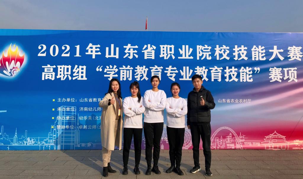11月26日—11月29日,山东省职业院校技能大赛(高职组)“学前教育专业教育技能”赛项在济南幼儿师范高等专科学校举行,来自全省31所高职院校的队伍参加了本次比赛。经过激烈角逐,由文化创意学院教师汤敏、于强担任指导教师,学生范长丽、孙合菊、李小旭组成的参赛团队荣获三等奖。