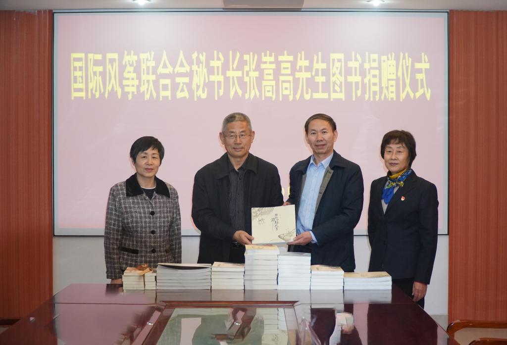 这次捐赠的图书包括《一座长着翅膀的城市》《魅力潍坊风筝文化》《风筝文化进校园》等共8种260册。该套图书由张嵩高主编,以风筝文化为主线,运用翔实资料,以图文并茂形式,从不同视角和侧面,全面系统地介绍了独具特色的潍坊风筝文化。丰富了我院图书馆的特色馆藏,为推进校园文化建设提供了鲜活生动的教材。