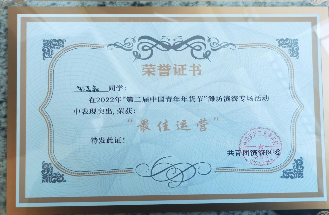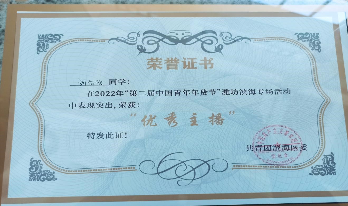 1月12日-13日,第二届“中国青年年货节”潍坊滨海专场活动在潍坊滨海第二创业大厦举办,我院信息工程学院学生郭嘉鑫和刘佳欣参加了本次活动,经过精心准备,两位同学分获“最佳运营”和“优秀主播”称号。