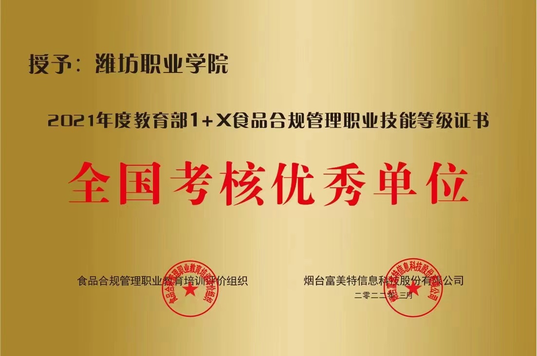近日,食品合规管理职业技能等级证书2021年度总结表彰暨2022年工作说明会在线上召开,会上公布了食品合规管理职业技能等级证书2021年度表彰名单,学院荣获全国考核优秀单位和领军院校奖。
