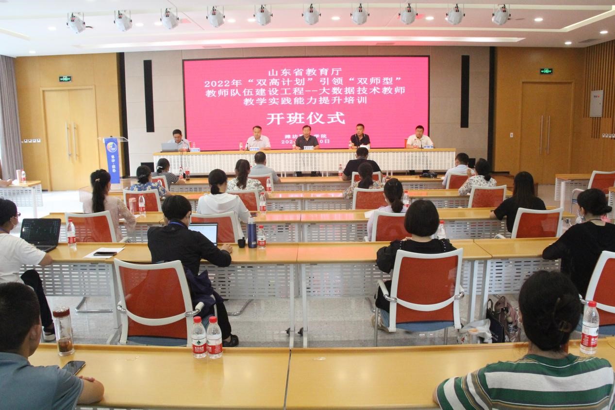 8月10日下午,山东省教育厅2022年“双高计划”引领“双师型”教师队伍建设工程--大数据技术教师教学实践能力提升培训班在山东(潍坊)公共实训基地举行开班仪式,学院党委委员、副院长贺志强、潍坊市教育投资集团党委副书记高佃升、信息工程学院负责人、浪潮优派科技有限公司主任工程师王建及部分骨干教师、参训学员参加开班仪式。