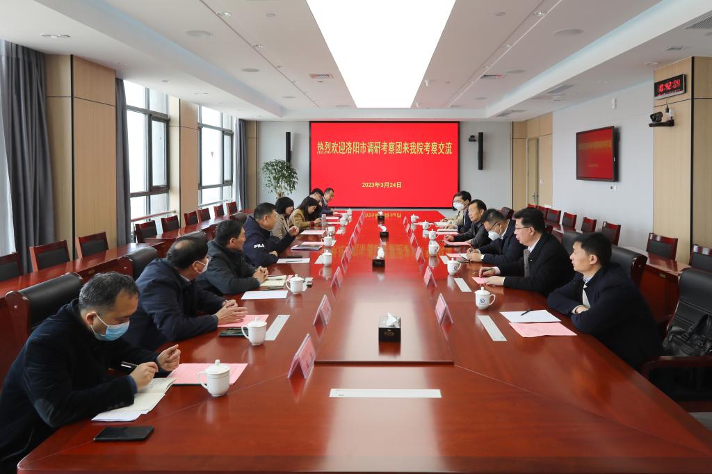 3月24日上午,洛阳市调研考察团乔思军一行来我院考察交流。学院党委委员、副院长贺志强会见客人,招生就业处、科技处、文化创意学院等有关部门、二级学院负责人陪同调研。