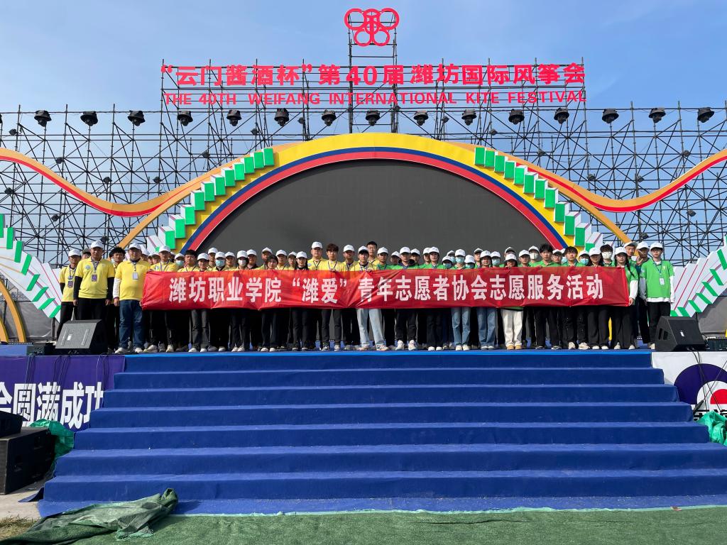 4月15日,第40届潍坊国际风筝会在滨海国际风筝放飞场开幕。来自59个国家和地区的600多名风筝爱好者云集潍坊,比试风筝扎制水平和放飞技艺,万千彩鸢乘海风翱翔,让海滨成为靓丽的风景线。为保障风筝会的顺利举行,学院从食品药品学院、国际商务学院、学生会、大学生青年志愿者协会、“潍爱”青年志愿者协会中选拔200余名志愿者为本次国际风筝会提供志愿服务。