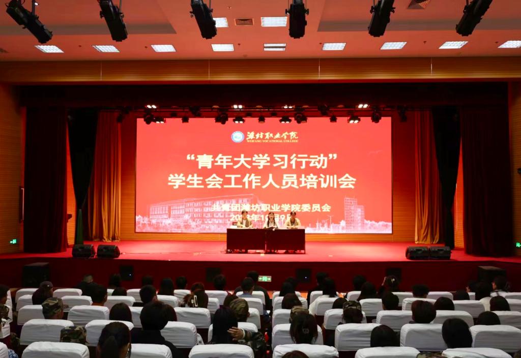 10月10日,“青年大学习行动”学生会工作人员培训会在滨海校区潍坊职业学院图书馆报告厅举行,学院团委相关负责同志、校学生会全体成员和大学生新媒体工作室成员参加会议。
