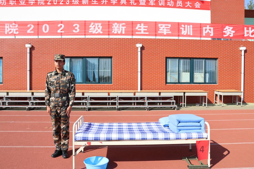 内务整理是军训中重要内容之一。通过内务比赛,不仅让学生对军队内务整理有了深刻的了解,学到了内务整理的技巧,也培养了良好的生活、行为习惯。(桑秀杰 李先兵供稿)