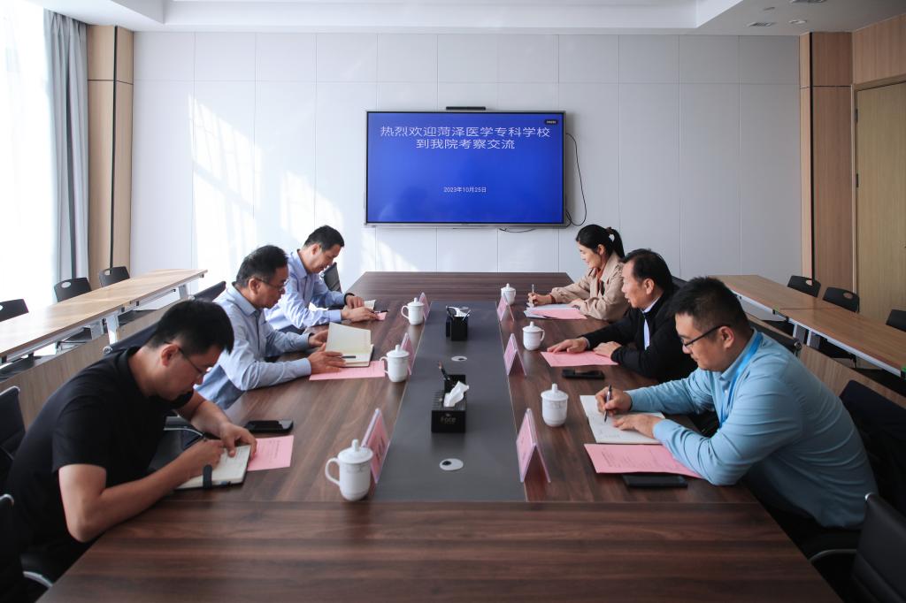 10月25日上午,菏泽医学专科学校党委委员、副校长齐云飞一行3人到我院考察交流。学院党委委员、副院长贺志强会见客人,招生就业处和科技处负责同志陪同参加座谈交流。