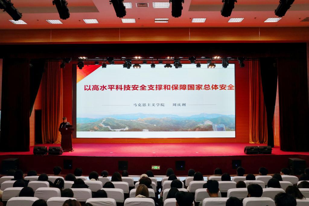 周庆利老师毕业于苏州大学马克思主义学院,多次被评为“潍坊市统战工作先进个人”。主讲人通过丰富的资料引导同学们了解科技安全的重要性,科技安全是国家安全的重要保障,是实现其他领域安全的关键要素,事关国家命运。科技是国家强盛之基,创新是民族进步之魂。从“科技人才安全”到“设施设备安全”、从“科技活动安全”到“成果应用安全”,主讲人通过详实的案例娓娓道来,引领同学们认识了科技安全的方方面面,帮助同学们认识到科技安全是支撑国家安全的重要力量和物质技术基础,科技安全与我们每一个人密切相关。最后主讲人通过讲解目前我国科技安全面临的威胁与挑战,以及我国为维护和增强科技安全而实施的“国家创新驱动发展战略纲要”等,激发了同学们的民族认同感和奋进心,使同学们充分认识到维护科技安全的重要性与迫切性。