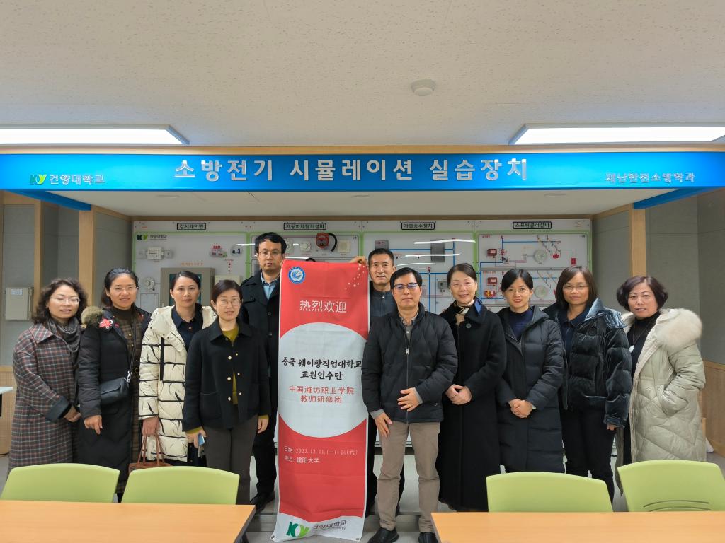 为进一步提高我院教师教育教学水平,开阔国际化视野,加强校际间合作交流,应韩国建阳大学邀请,我院选派马天芳等10名骨干教师于12月10日至12月16日赴该校进行了为期7天的研修学习,现已圆满完成培训任务。