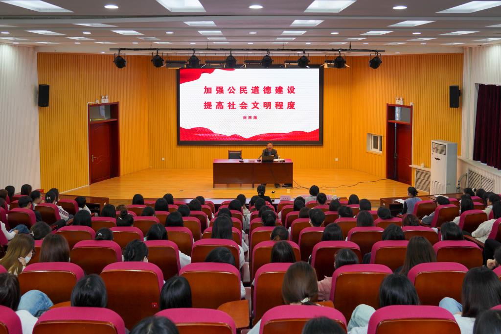 报告会上,刘西海紧密结合军旅生涯和精神文明建设工作经历与心得,以《加强公民道德建设提高社会文明程度》为主题,以典型案例和楷模人物的感人事迹为切入点,从要深刻理解加强公民道德建设的重要意义、要看到在文明素质方面存在的差距、要努力提高道德自觉实践能力三个方面为师生作了一场精彩的专题报告。张瑞霞以《我用所爱报党恩》为题,结合自身经历现身说法,讲述了她孝老爱亲、自强不息,深感党恩、回馈社会的感人事迹,深入浅出、娓娓道来,讲内心、讲行动,讲成长、讲奉献,讲得实在、讲得深情。两位嘉宾的宣讲,内容丰富、内涵深邃,让师生深深感受到来自精神文明社会的温暖。在场师生纷纷表示今后要以道德模范、身边好人为榜样,遵守社会公德、积极服务社会,自觉做校园和城市文明建设的践行者。