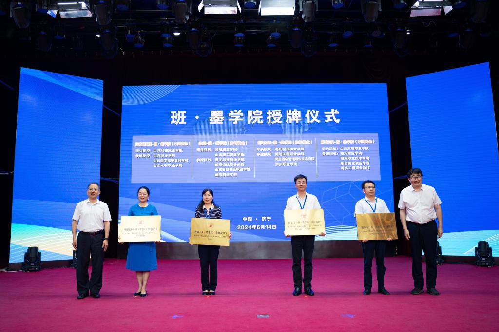 6月14日,职业教育海外“班·墨学院”建设工作交流活动在山东济宁举办,本次活动由山东省教育厅指导,山东理工职业学院、海外“班·墨学院”建设工作委员会主办,有色金属工业人才中心协办,我院作为12所“班·墨学院”牵头建设院校之一参加了活动。与会领导为12所“班·墨学院”的牵头建设院校授牌,学院副院长陈美霞代表我院上台接受授牌。