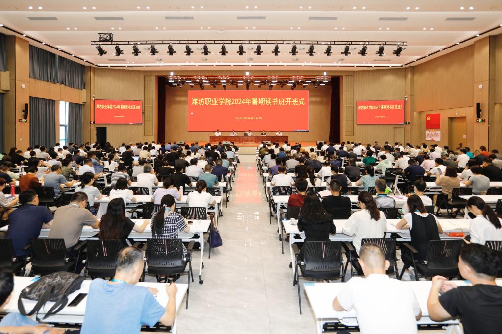 为学习贯彻党的二十届三中全会精神,着力培养高素质专业化教师队伍和忠诚干净担当作为的高素质专业化党员、干部队伍,8月19日上午,学院2024年暑期读书班正式开班。开班仪式在滨海校区综合楼1楼西报告厅设立主会场,在综合楼二楼东会议室、图书馆报告厅、奎文校区16号楼523教室设立分会场。学院党政领导班子成员、全体教职工参加仪式。学院党委副书记韩瑞东出席仪式并讲话,副院长陈美霞主持仪式。
