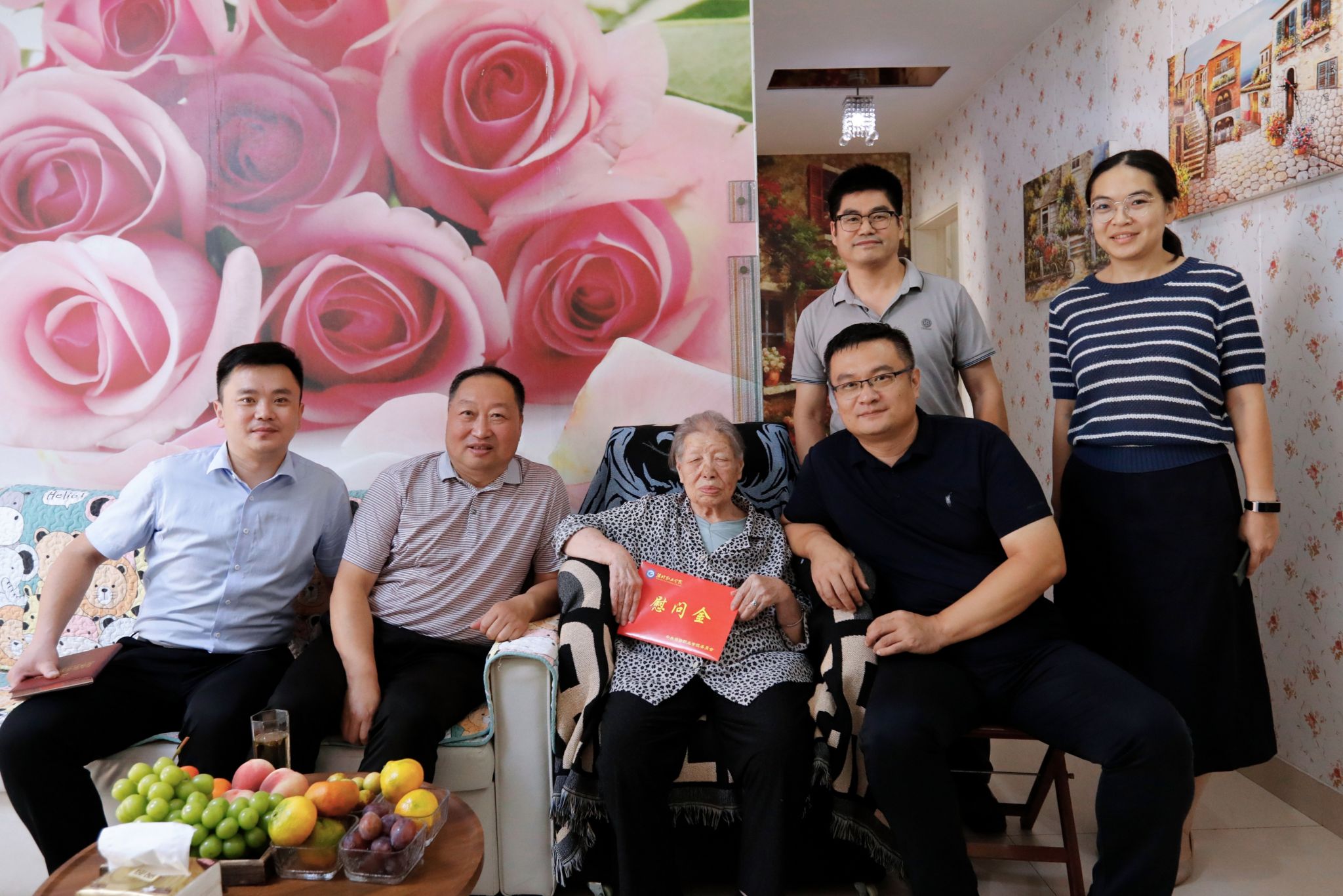 我院离休干部邹立新,1925年3月出生,20岁参加革命,1947年入党,解放战争时期组织妇女做军鞋,送军粮支援前线,1956年由胶南调入我院,是学院建校的七元老之一,参与了学院的建设与发展,时至今日已99岁高龄。在走访慰问中,付一明详细询问了邹老师的生活和健康状况,了解实际需求,感谢她为新中国的建立和建设做出的贡献,以及为学院建设付出的汗水与心血,并送上了健康长寿、幸福安康的祝福。他要求,组织人事处(离退休工作处)同志要继续关心、照顾好邹老师,做好“一对一”服务工作,真正做到思想上关心、生活上照顾、精神上关怀。邹老师虽已99岁高龄,依然精神矍铄,她感谢学院党委的关心关怀,对学院所取得的成就表示由衷的高兴,希望学院发展得越来越好。此外,学院领导还走访了因公牺牲党员姜群英的母亲姜宝星。